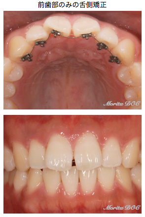 前歯部のみの舌側矯正は、前歯部だけに装置をつけるので、違和感を最小限に抑えることができます。